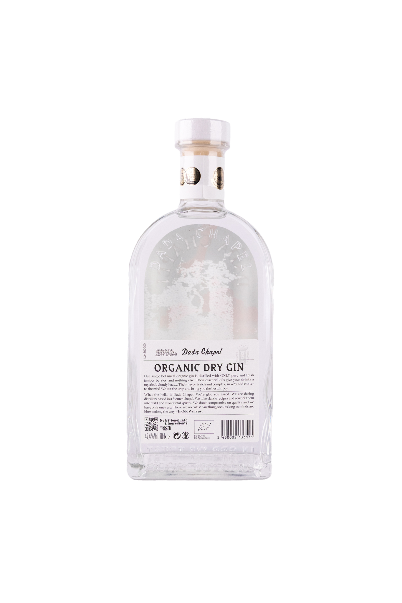In de schaduw van het Gentse Belfort vond Dada Chapel haar thuis in een prachtig pand met een rijke geschiedenis. In de stokerij, onder leiding van meesterdistilleerder Cédric Heymans, kan er een grote verscheidenheid aan dranken gedistilleerd worden. Een daarvan is een Organic Dry Gin. Geen tierlantijntjes of fancy foefjes, alleen verse jeneverbessen van de beste kwaliteit. Deze less is more-gin werd ondertussen 5 keer bekroond met een gouden medaille. Niet alleen heel lekker, maar dankzij de kunstige fles ook een lust voor het oog.
